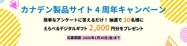 この感謝の気持ちを込めまして、カナデン製品サイト4周年記念のキャンペーンを実施いたします。